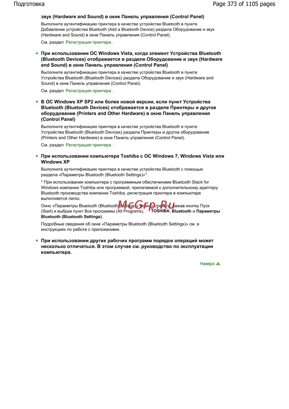 Bluetooth производства компании Toshiba, регистрация принтера в компьютере