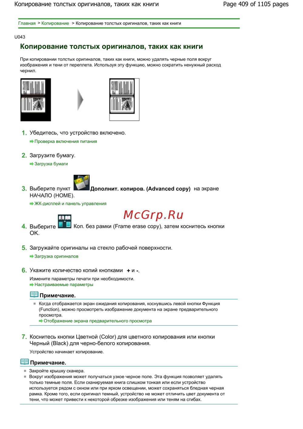 Page 409 of 1105 pagesКопирование толстых оригиналов, таких как книги