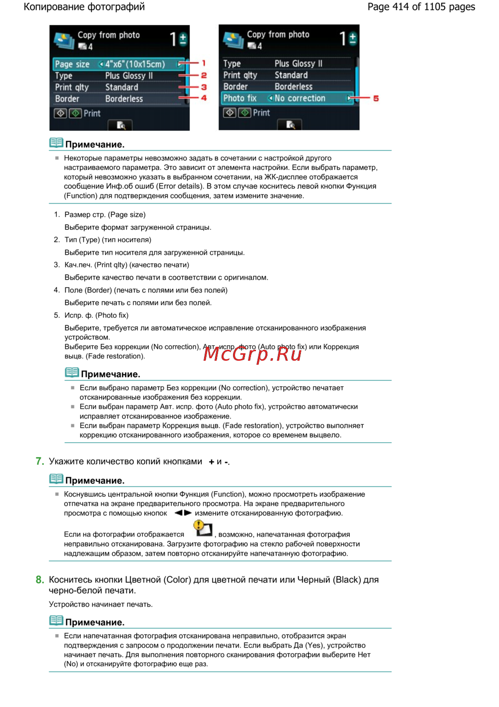 Canon Pixma MG6240 — настройки печати и сканирования: руководство по параметрам [414/1105]