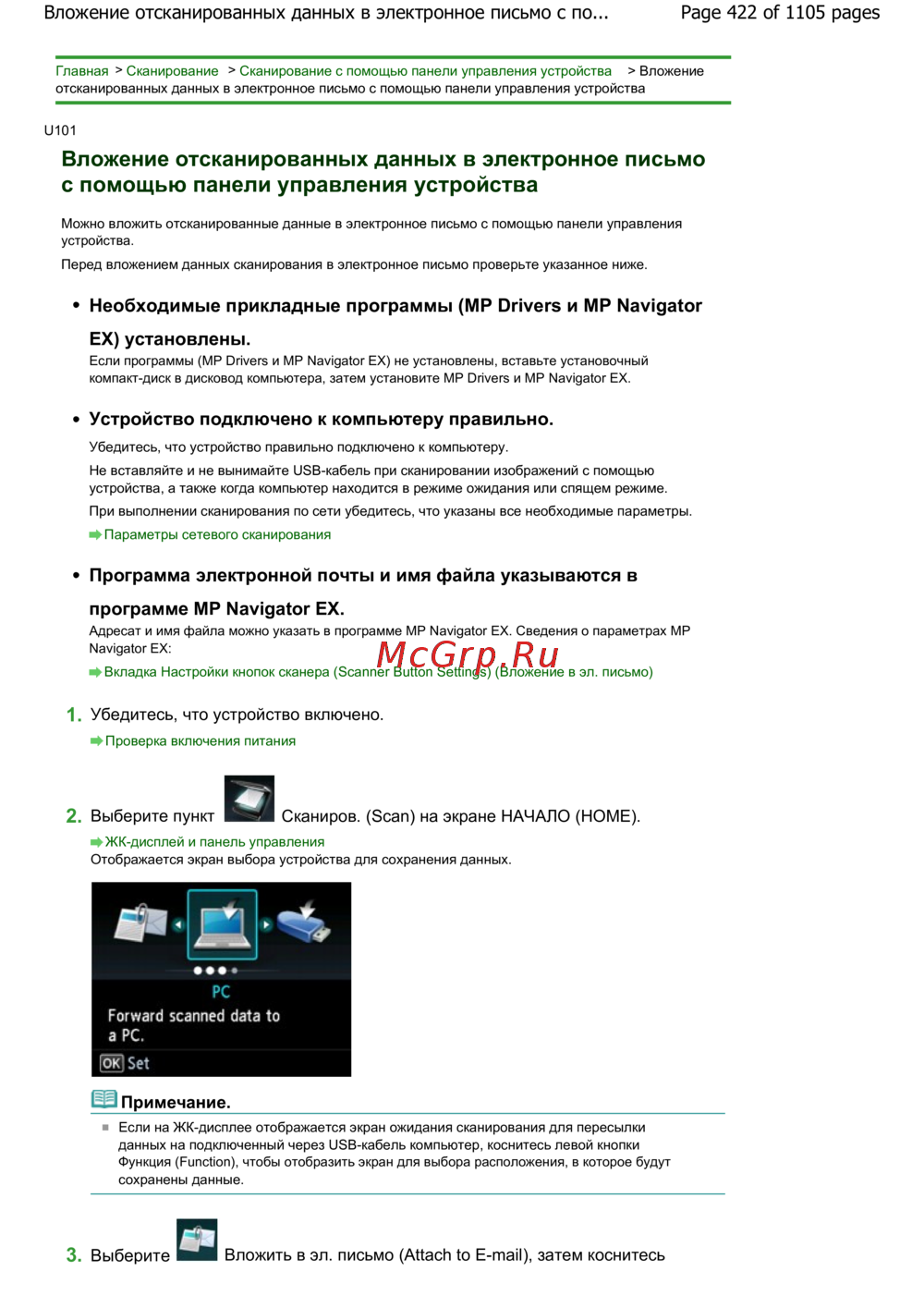 Page 422 of 1105 pagesВложение отсканированных данных в электронное письмо с по...