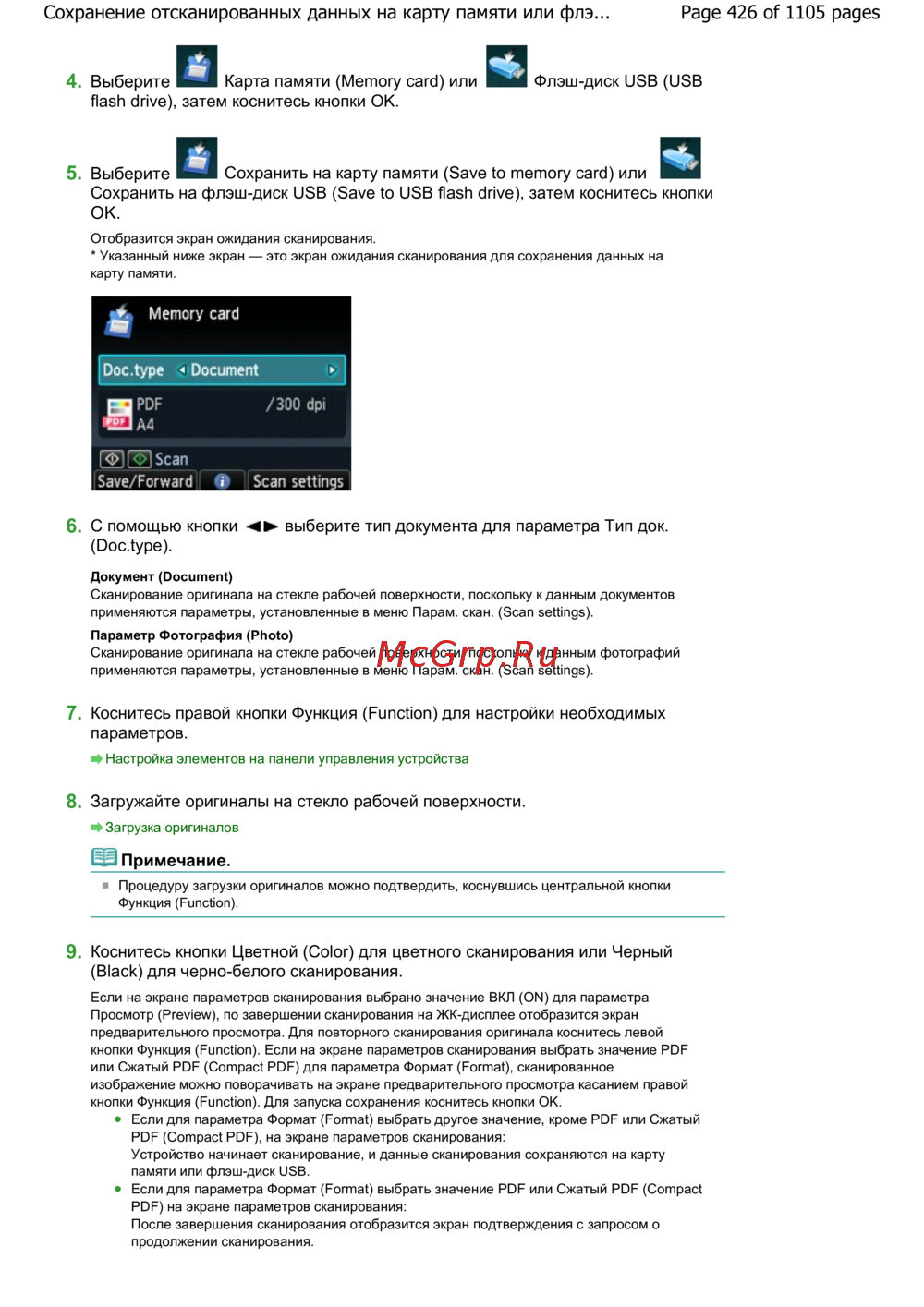 Canon Pixma MG6240 — как сохранить сканированные данные на карту памяти или флэш-диск [426/1105]