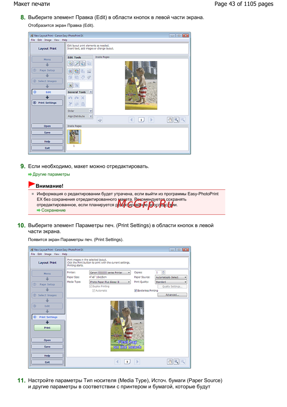 Canon Pixma MG6240 — как редактировать макеты и настраивать параметры печати [43/1105]