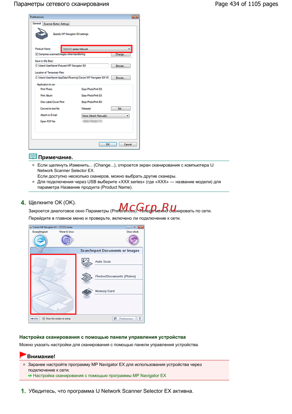 Page 434 of 1105 pagesПараметры сетевого сканирования