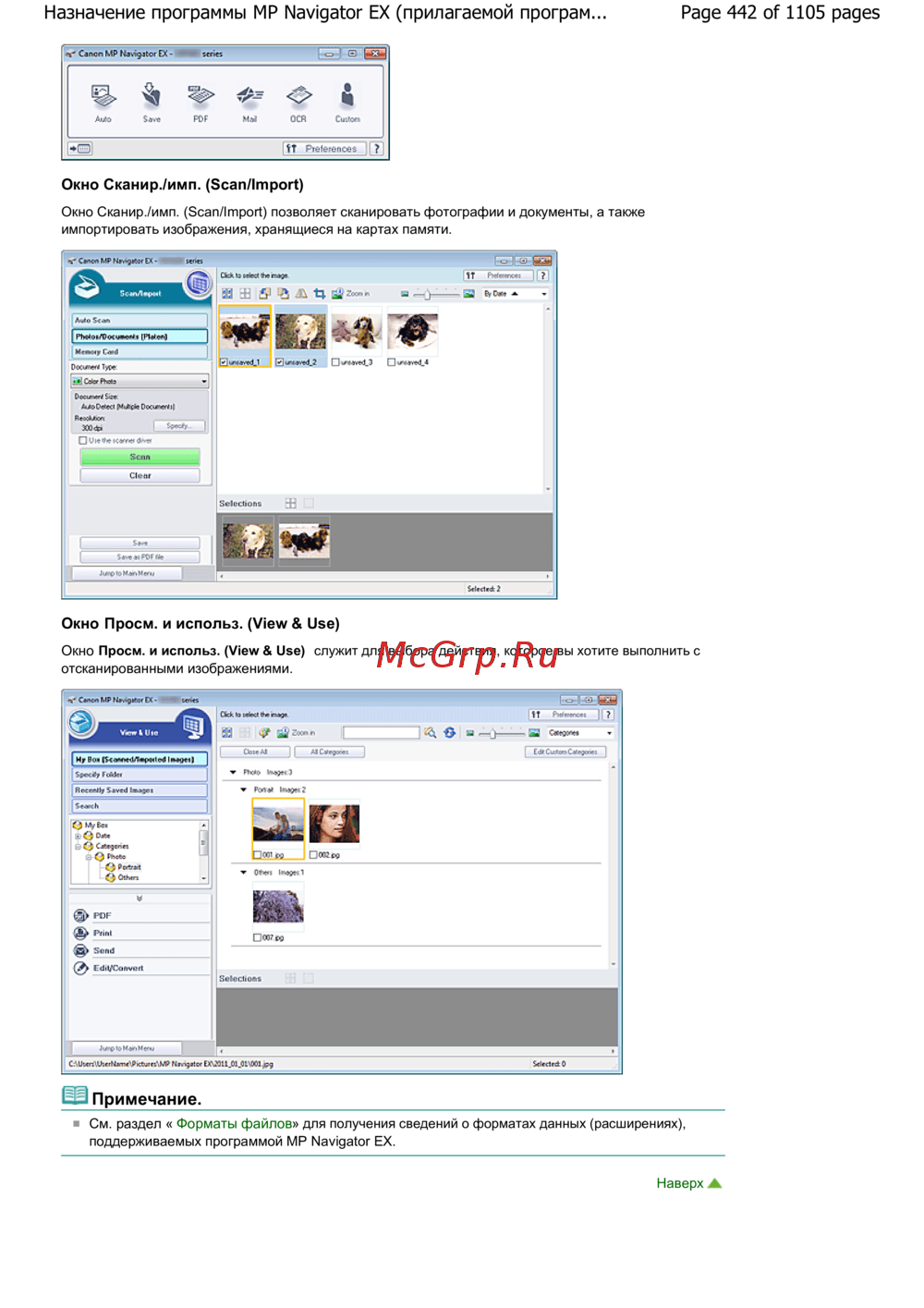 Page 442 of 1105 pagesНазначение программы MP Navigator EX (прилагаемой програм...
