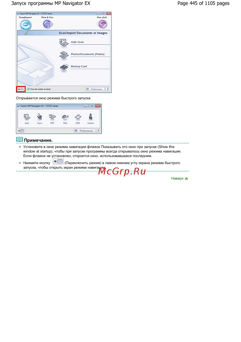 Page 445 of 1105 pagesЗапуск программы MP Navigator EX