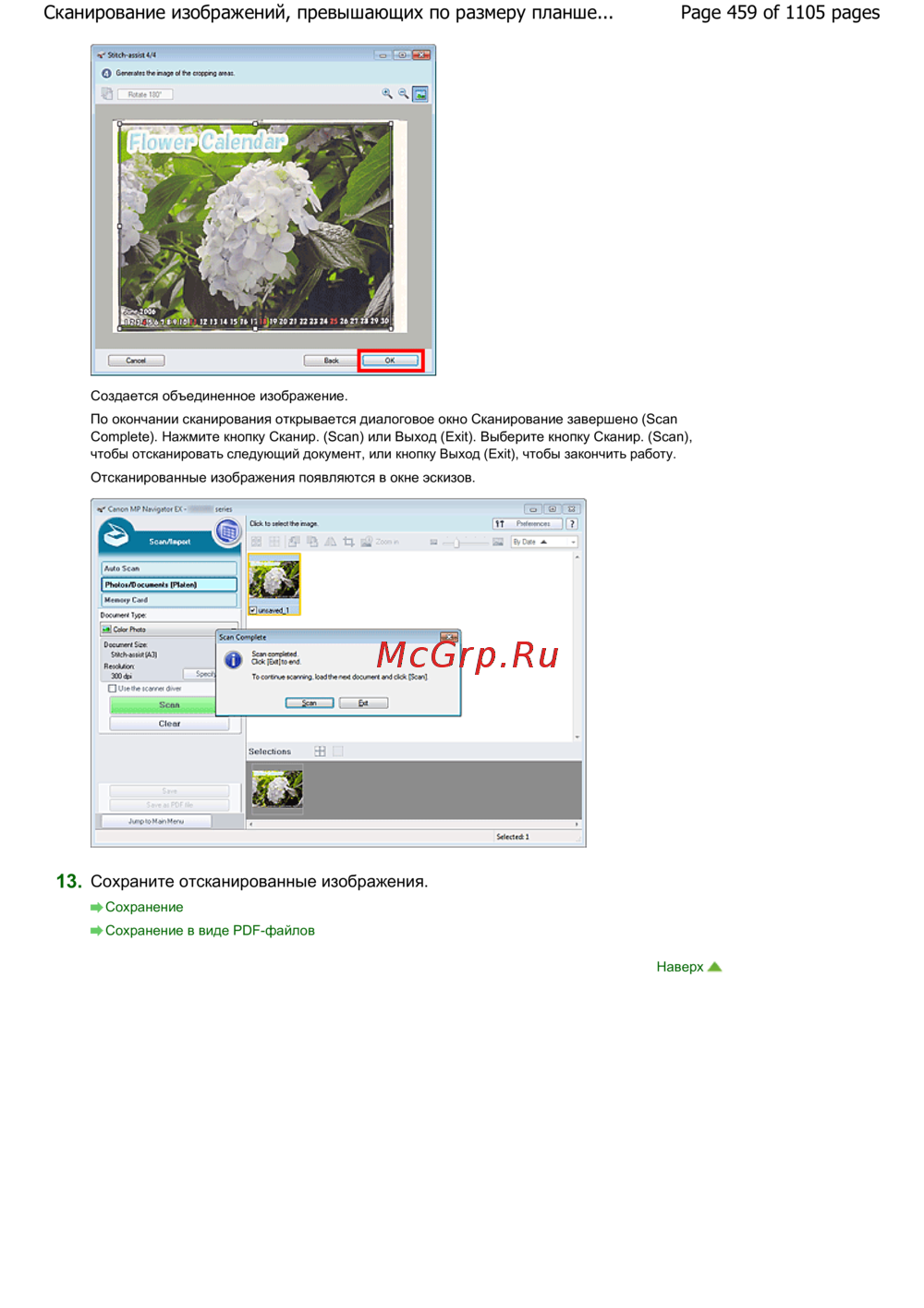 Page 459 of 1105 pagesСканирование изображений, превышающих по размеру планше...