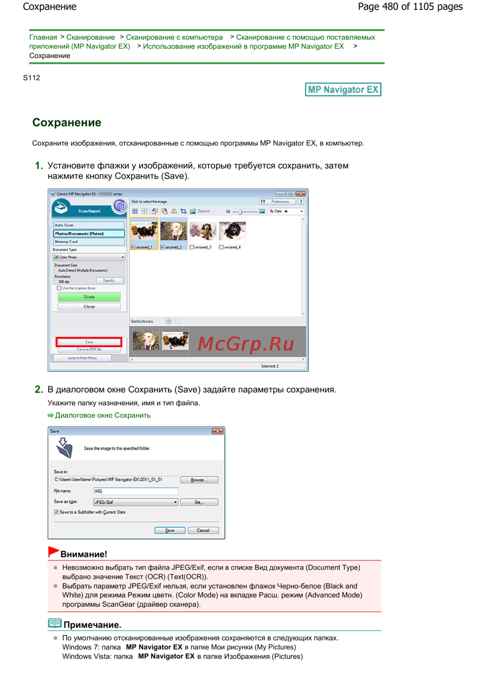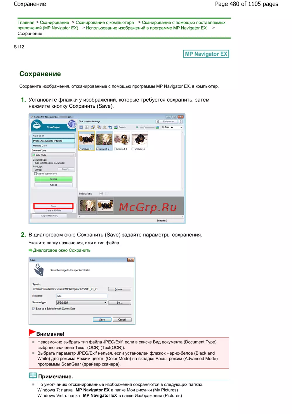 Canon Pixma MG6240 — сохранение отсканированных изображений с помощью MP Navigator EX [480/1105]