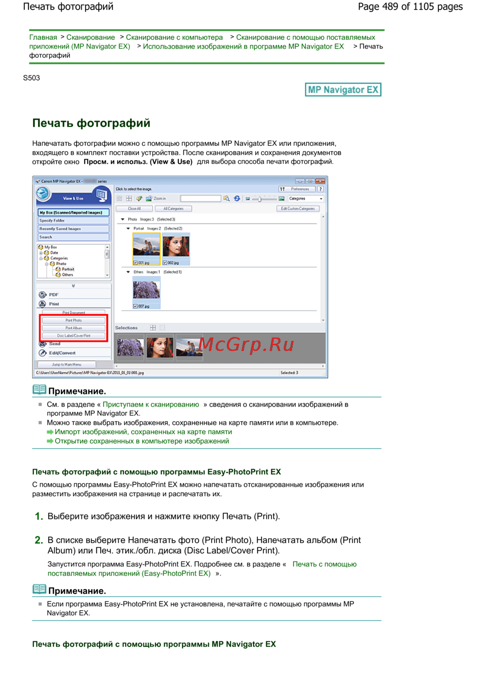 Canon Pixma MG6240 — как печатать фотографии с помощью программного обеспечения для сканирования [489/1105]