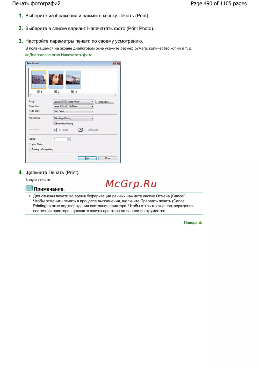 Page 490 of 1105 pagesПечать фотографий