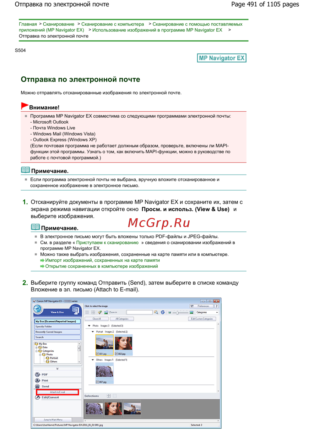Canon Pixma MG6240 — сканирование изображений и отправка по электронной почте [491/1105]