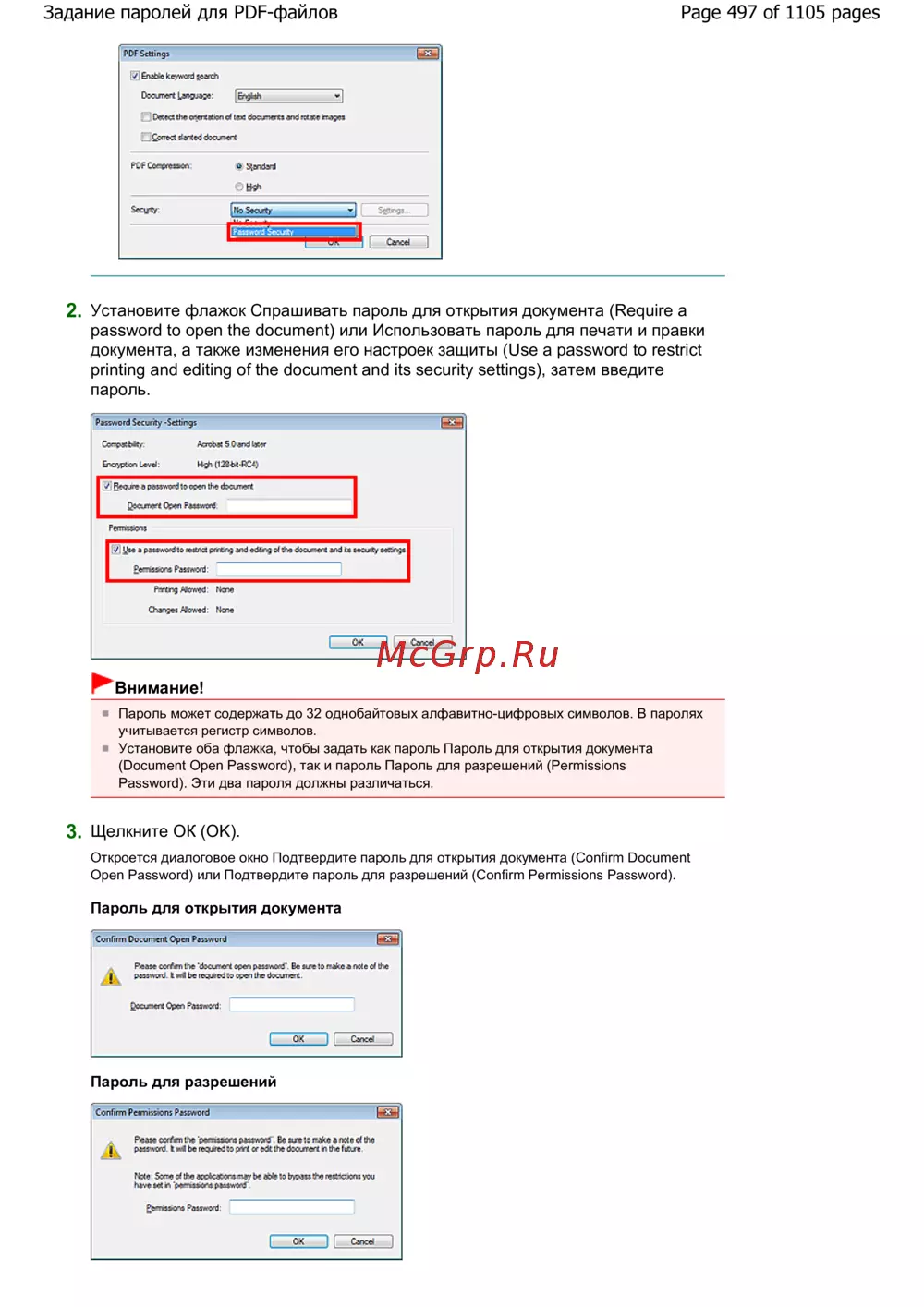 Page 497 of 1105 pagesЗадание паролей для PDF-файлов