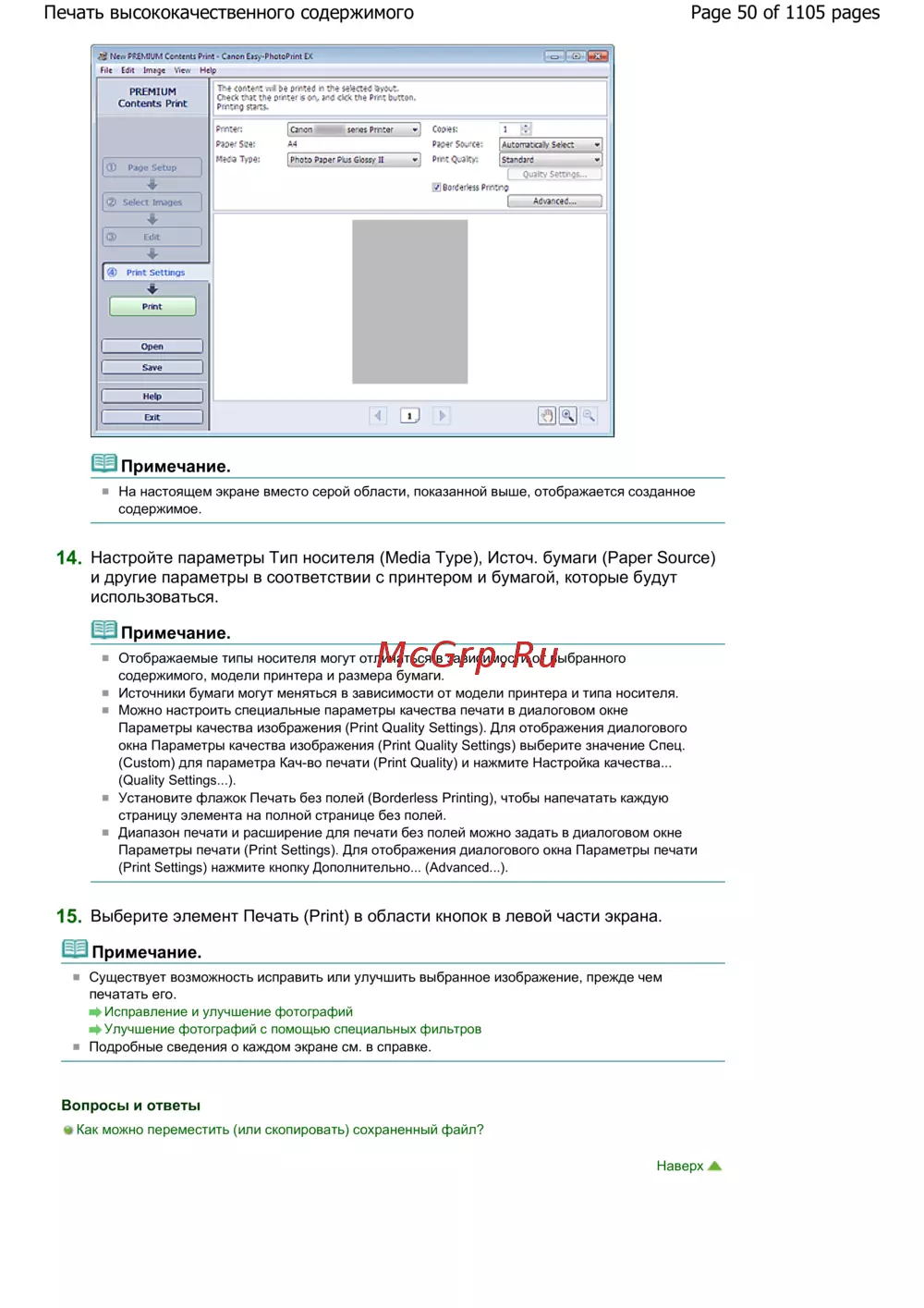 Canon Pixma MG6240 — настройка параметров печати для высококачественного содержимого [50/1105]