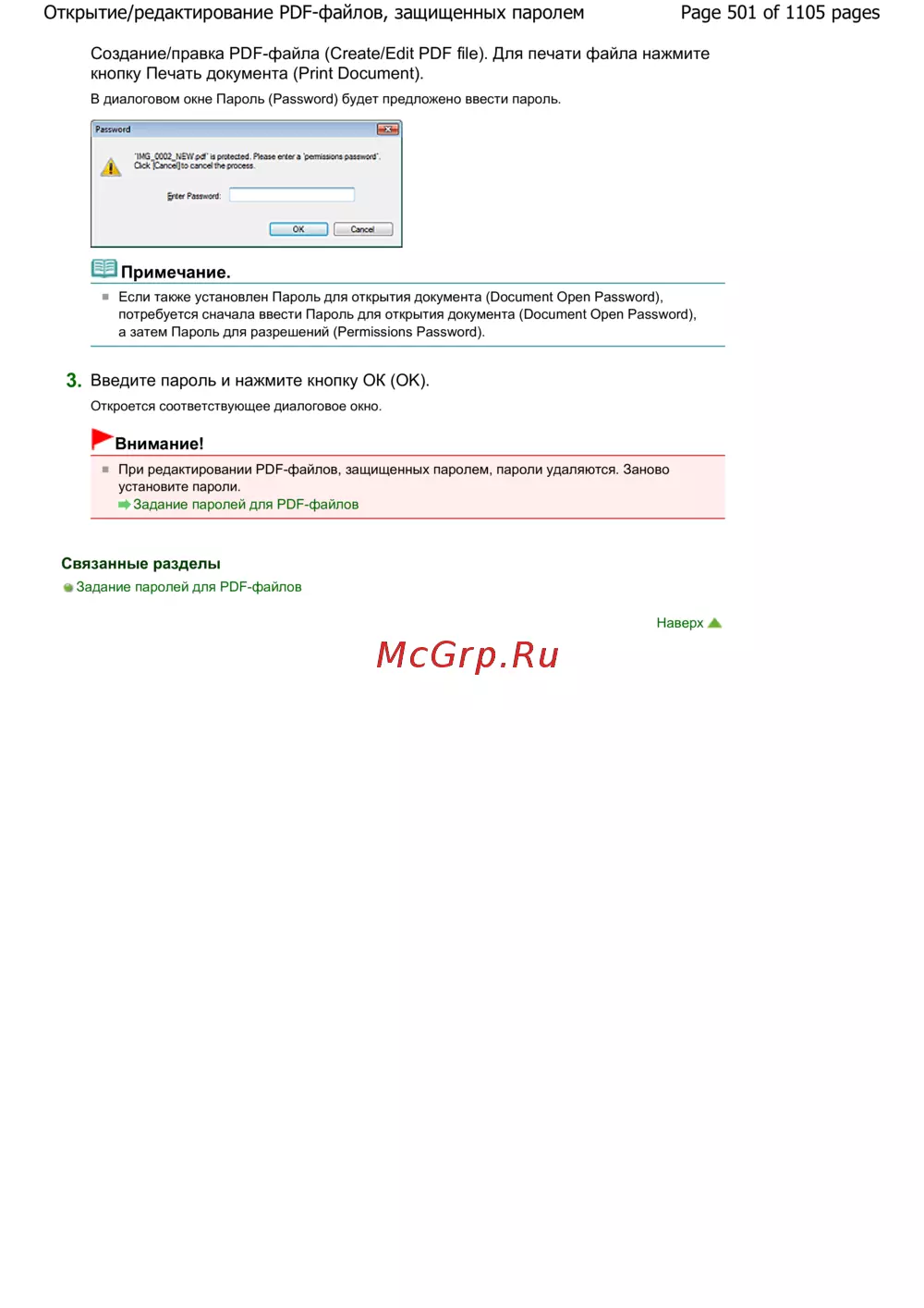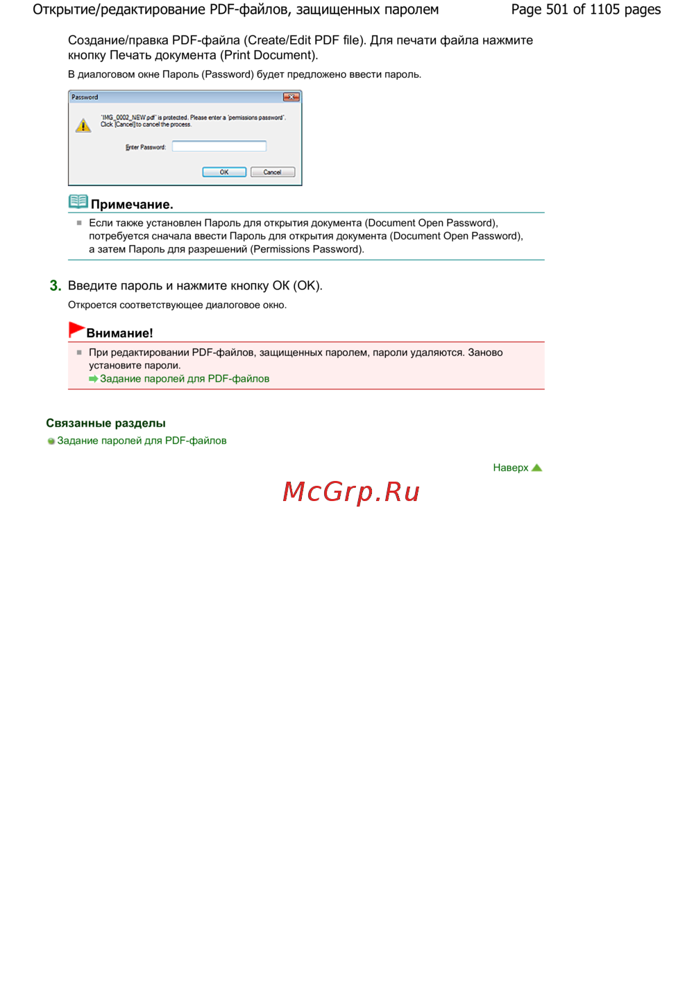Page 501 of 1105 pagesОткрытие/редактирование PDF-файлов, защищенных паролем