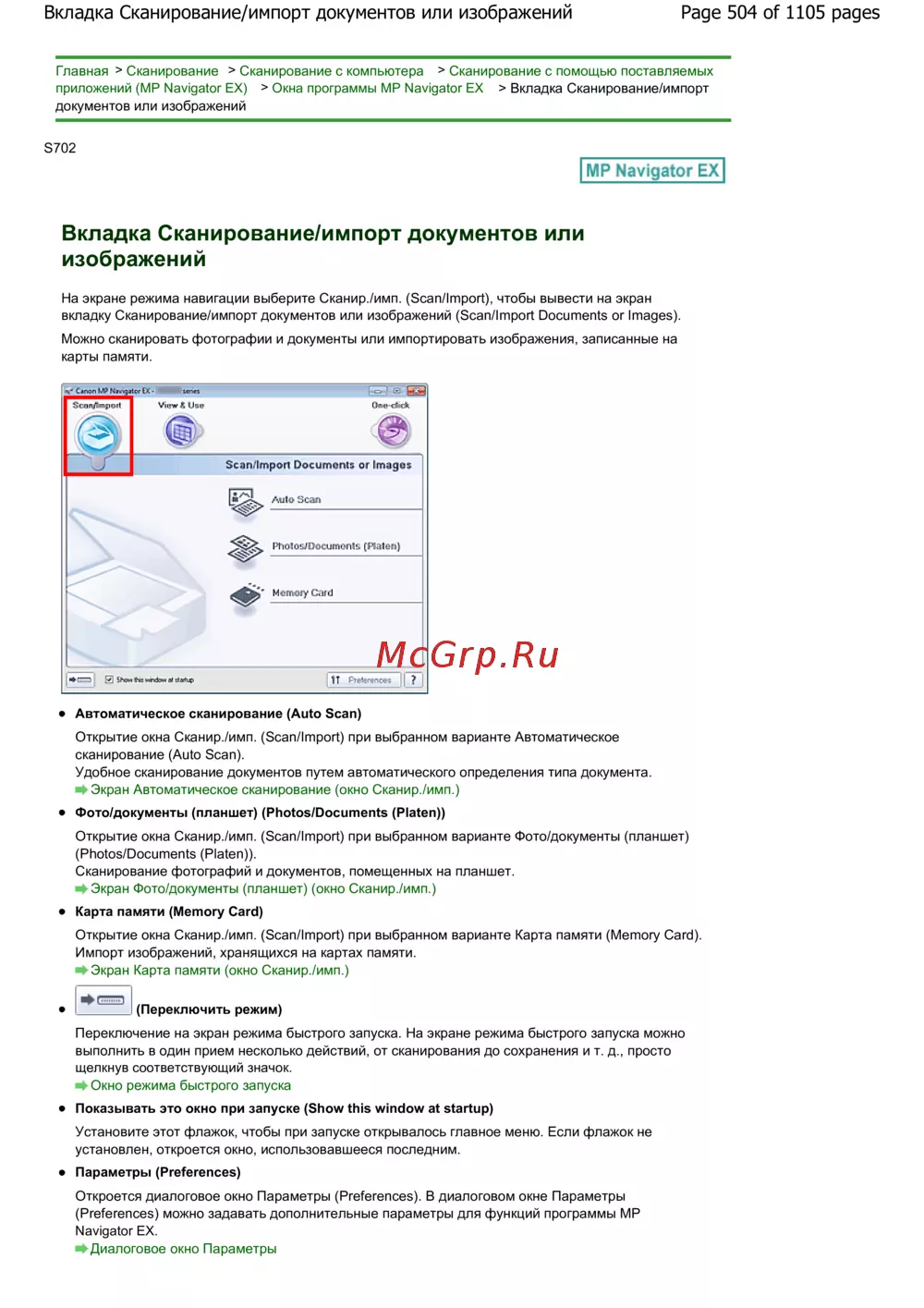 Page 504 of 1105 pagesВкладка Сканирование/импорт документов или изображений