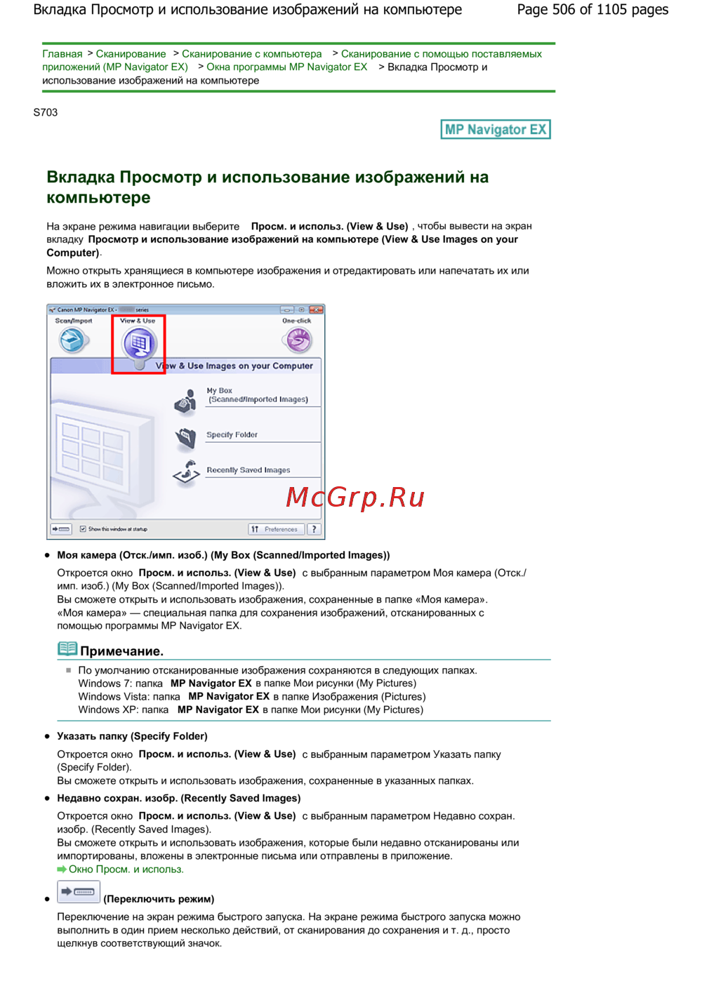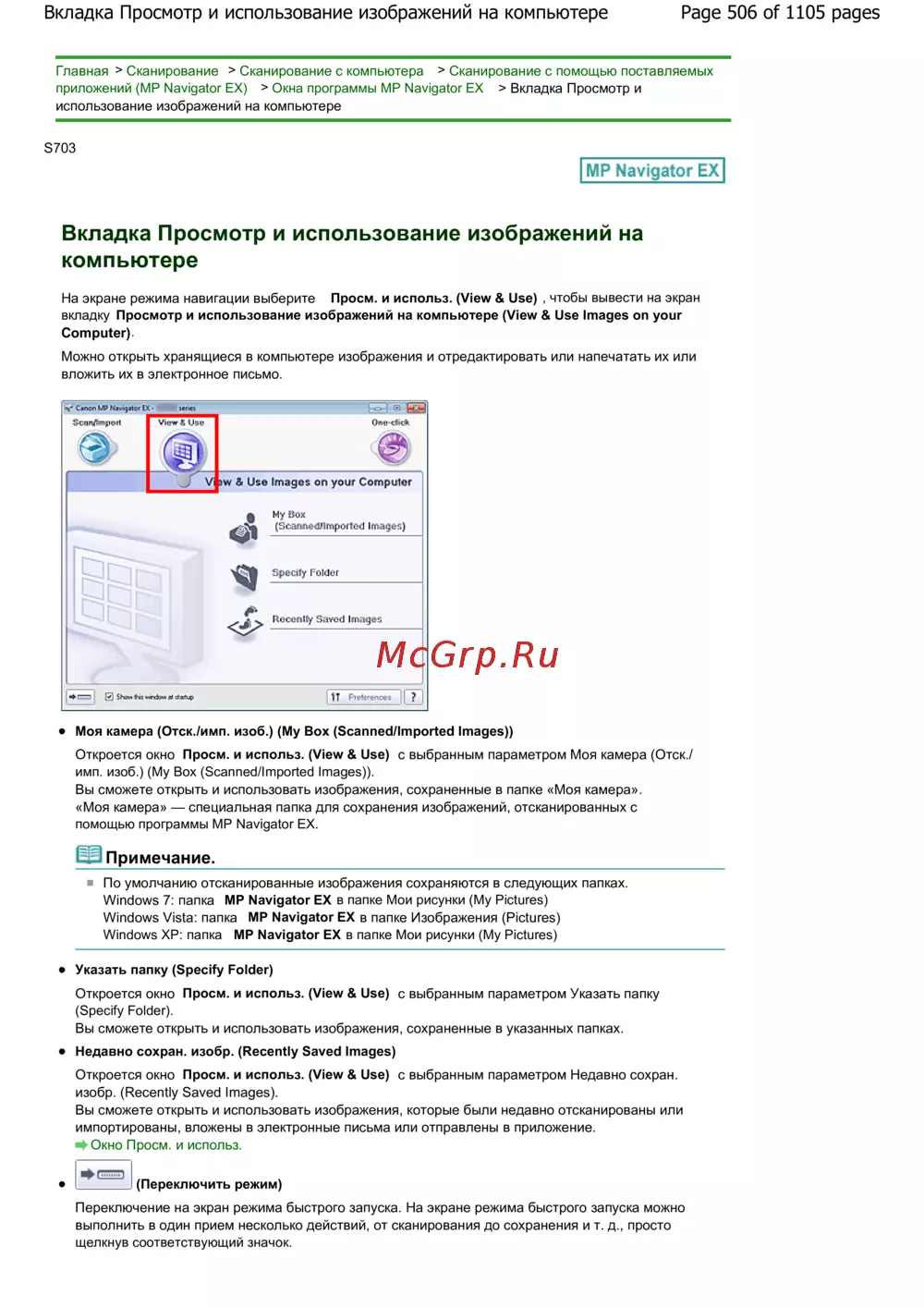 Page 506 of 1105 pagesВкладка Просмотр и использование изображений на компьютере