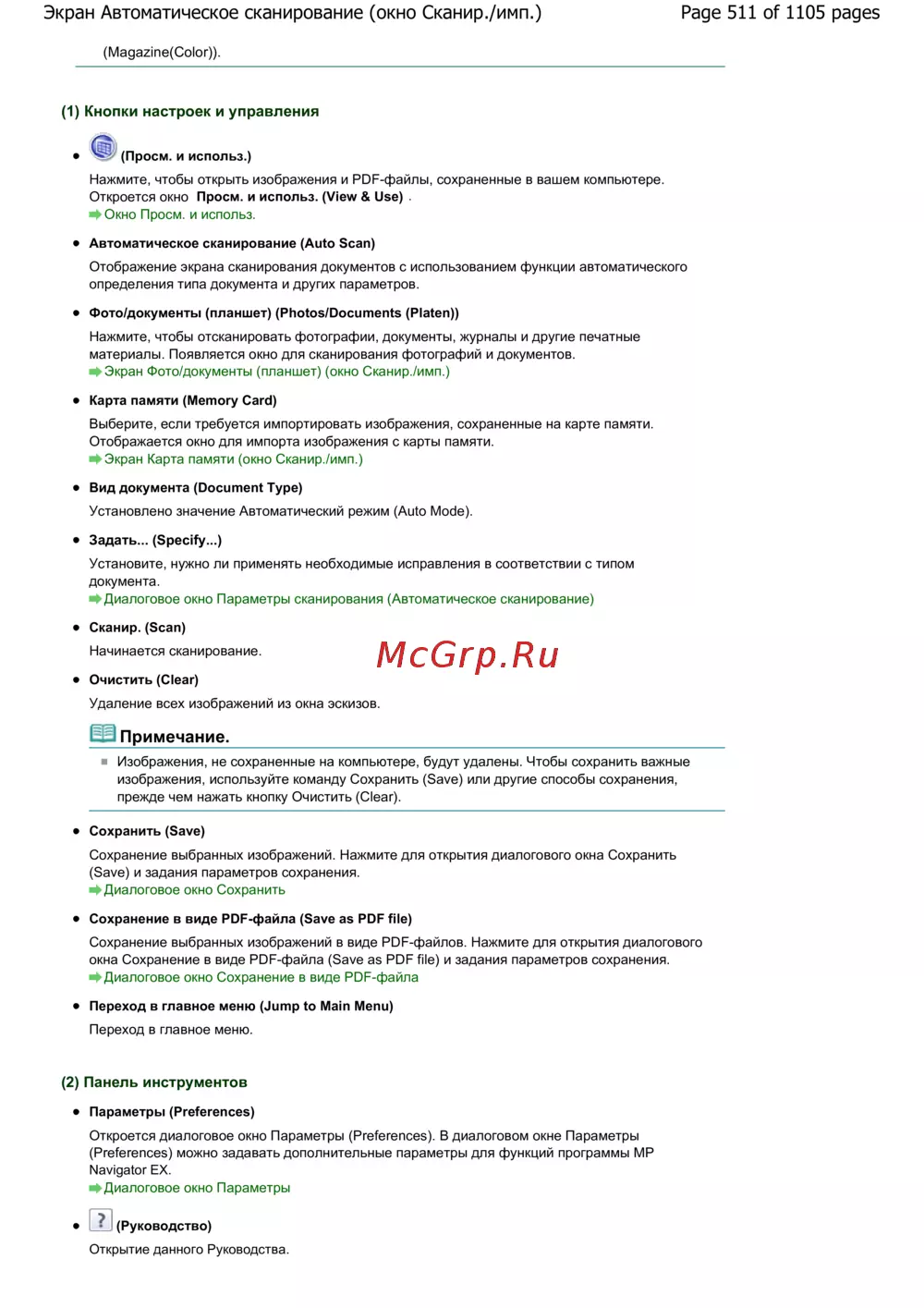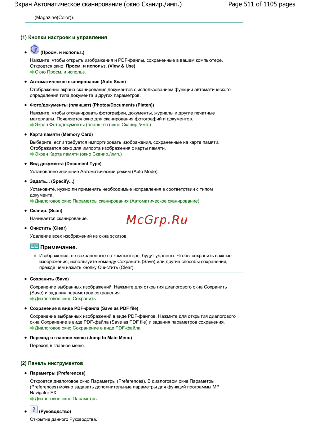 Page 511 of 1105 pagesЭкран Автоматическое сканирование (окно Сканир./имп.)