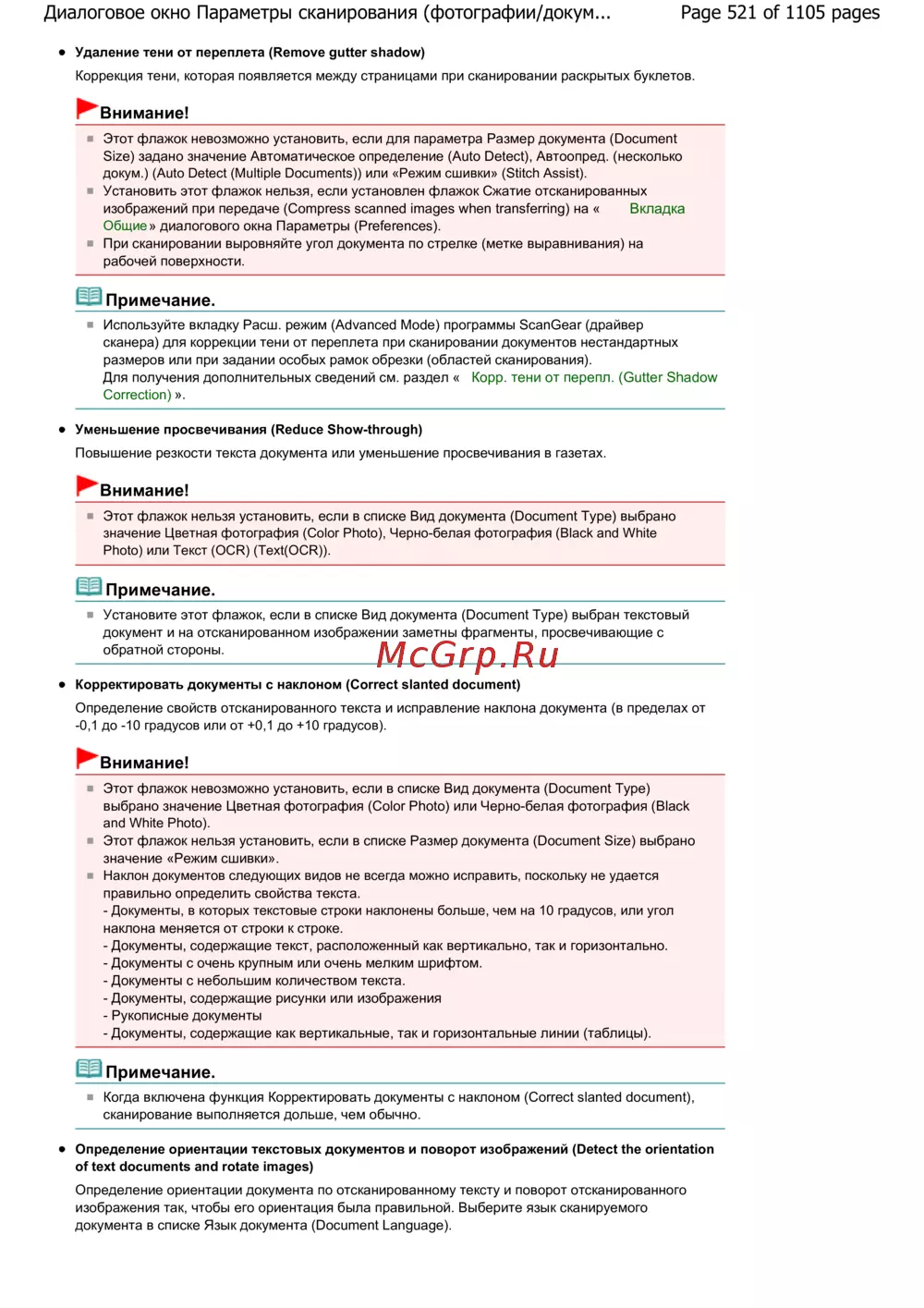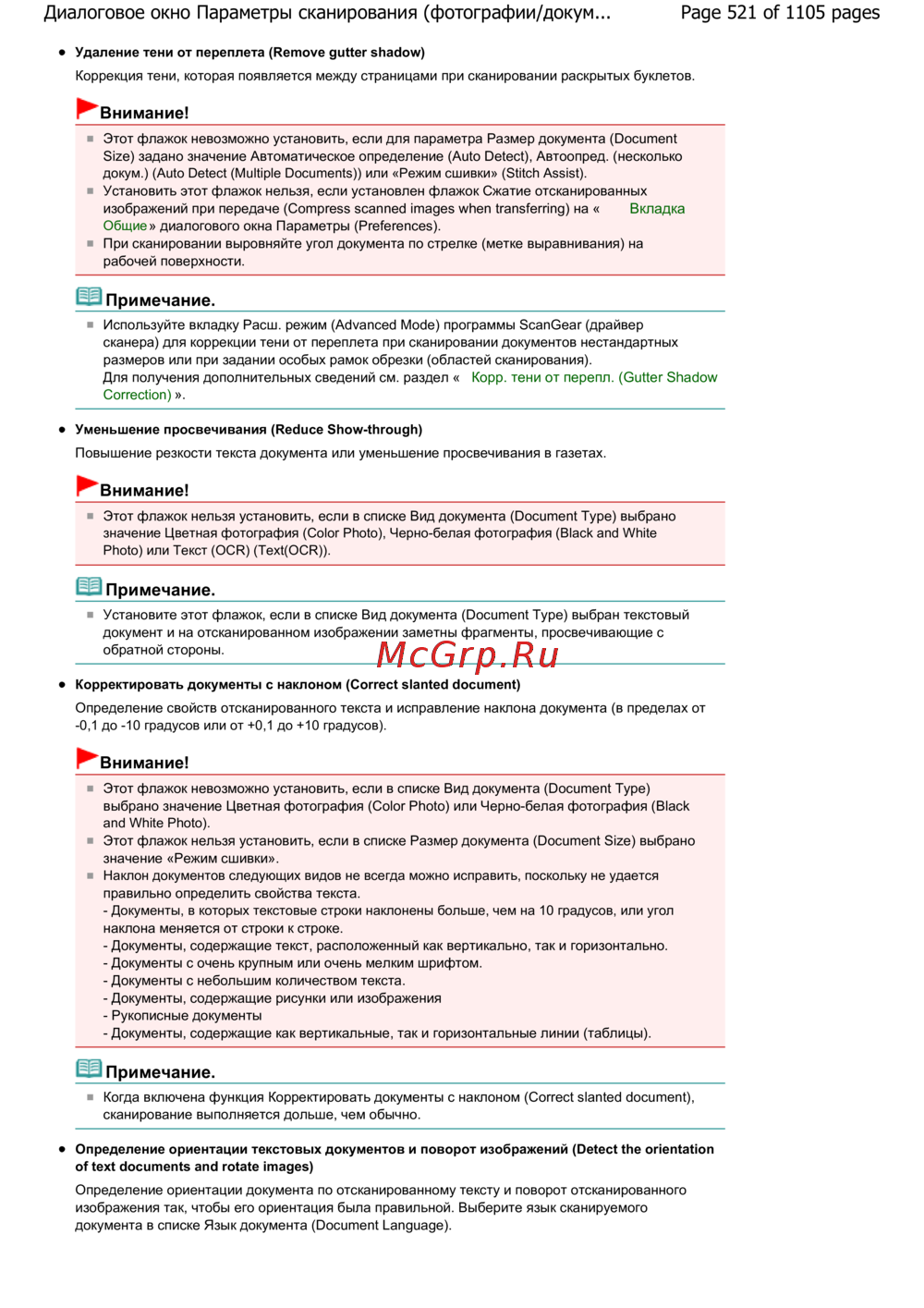 Canon Pixma MG6240 — коррекция теней и наклона при сканировании документов [521/1105]