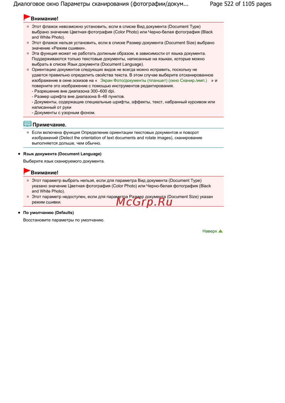 Canon Pixma MG6240 — настройки сканирования: ограничения и рекомендации [522/1105]