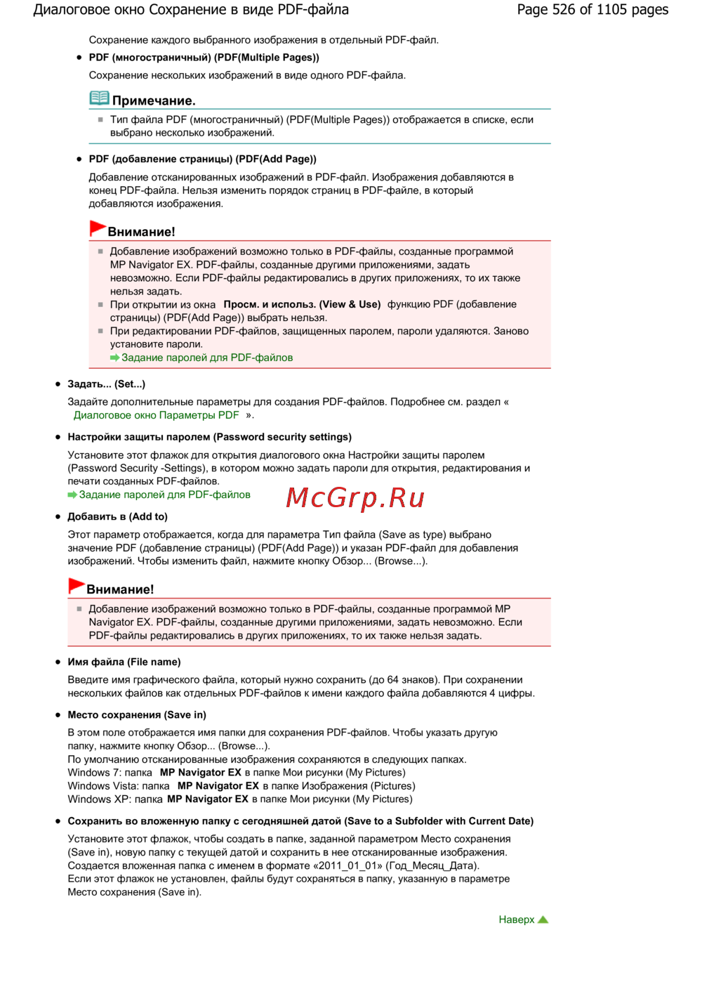 MP Navigator EX. PDF-файлы, созданные другими приложениями, задать