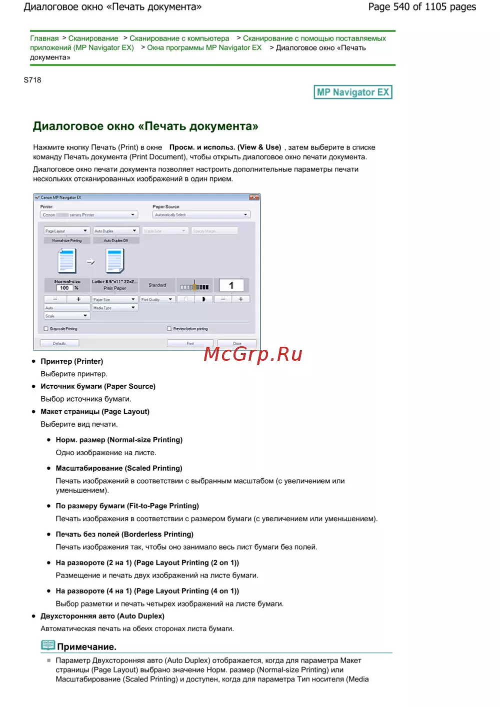 Page 540 of 1105 pagesДиалоговое окно «Печать документа»