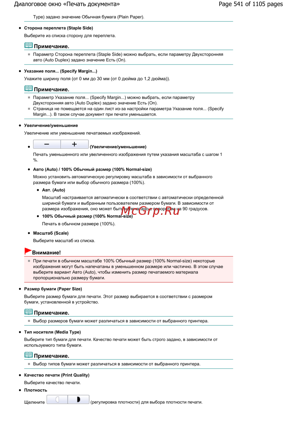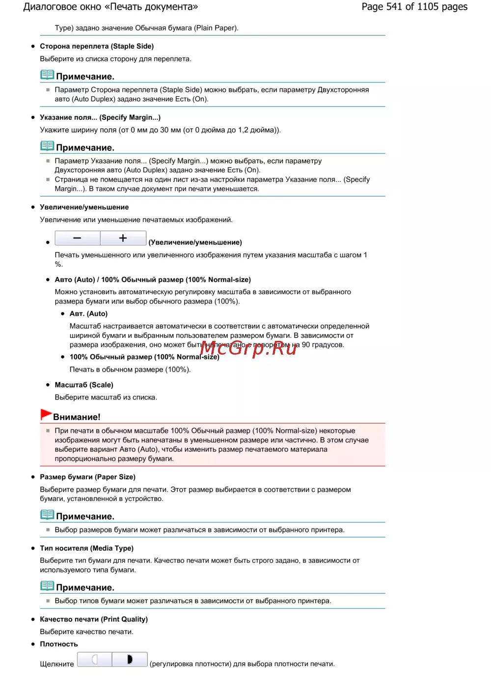 Canon Pixma MG6240 — настройки печати: выбор бумаги, масштаба и качества [541/1105]