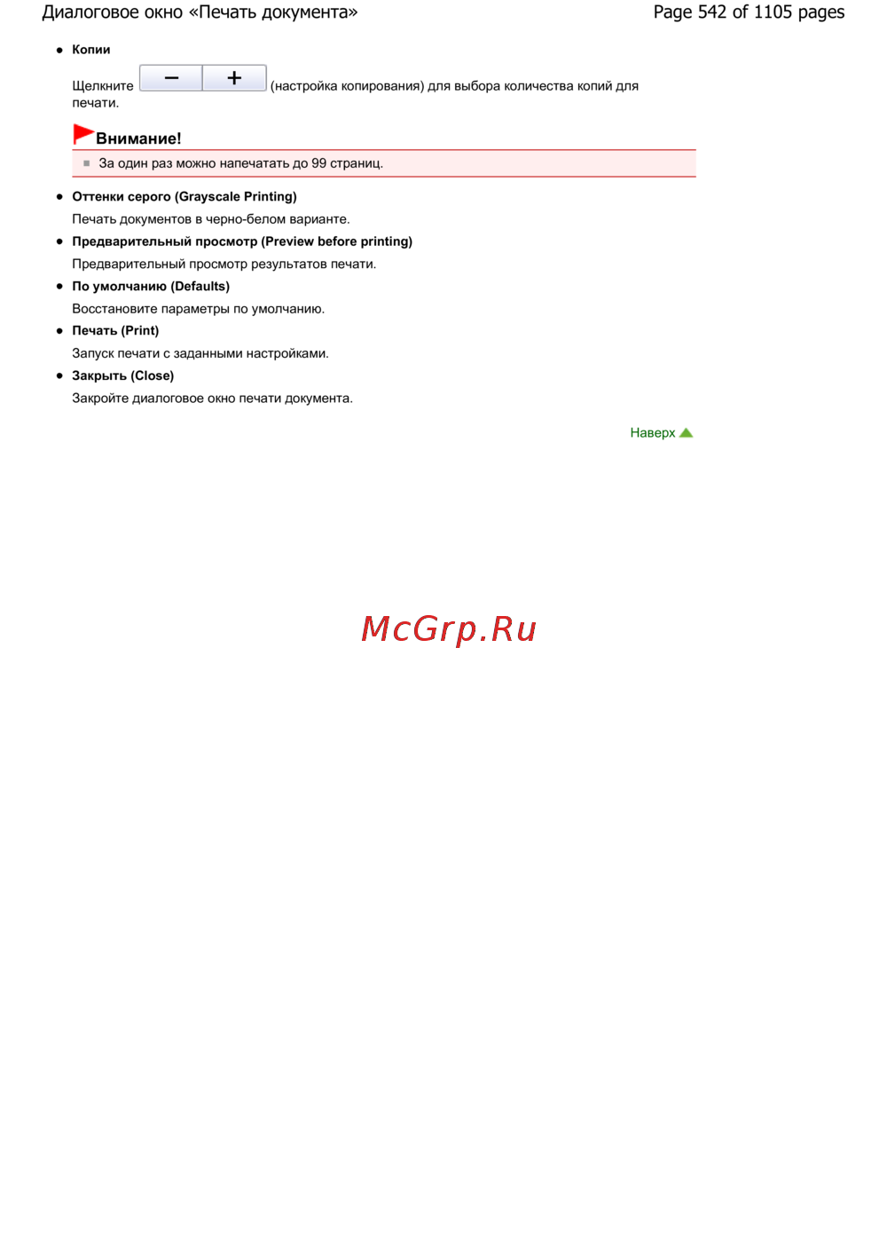 Page 542 of 1105 pagesДиалоговое окно «Печать документа»
