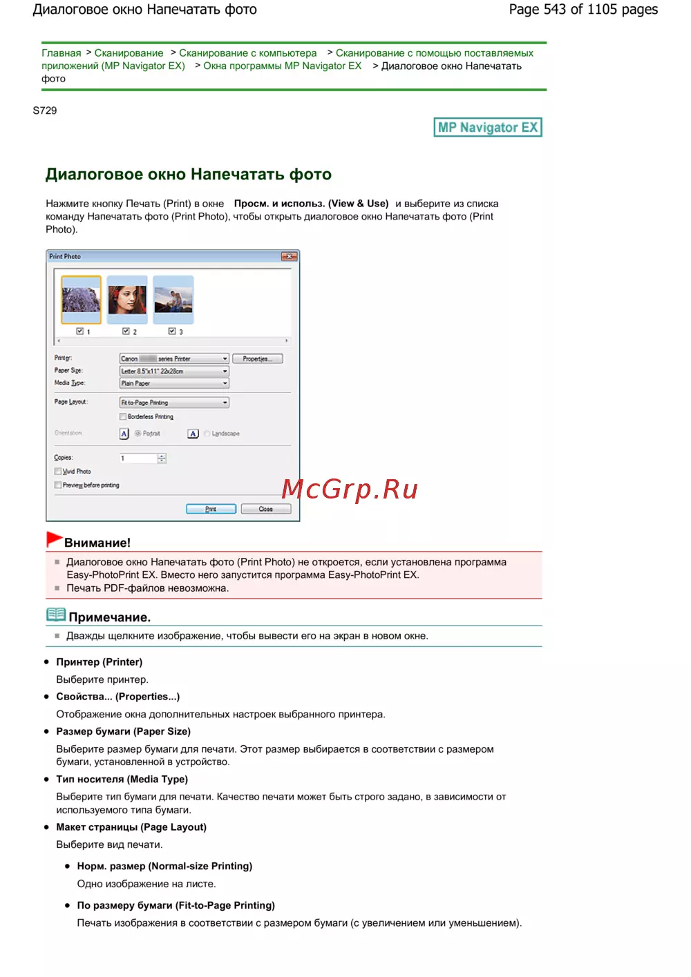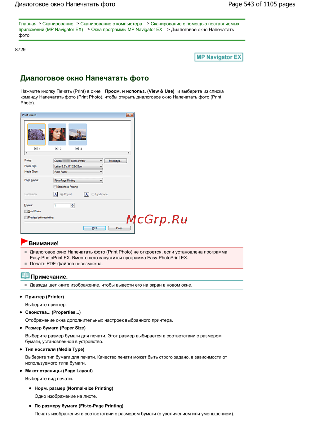 Page 543 of 1105 pagesДиалоговое окно Напечатать фото