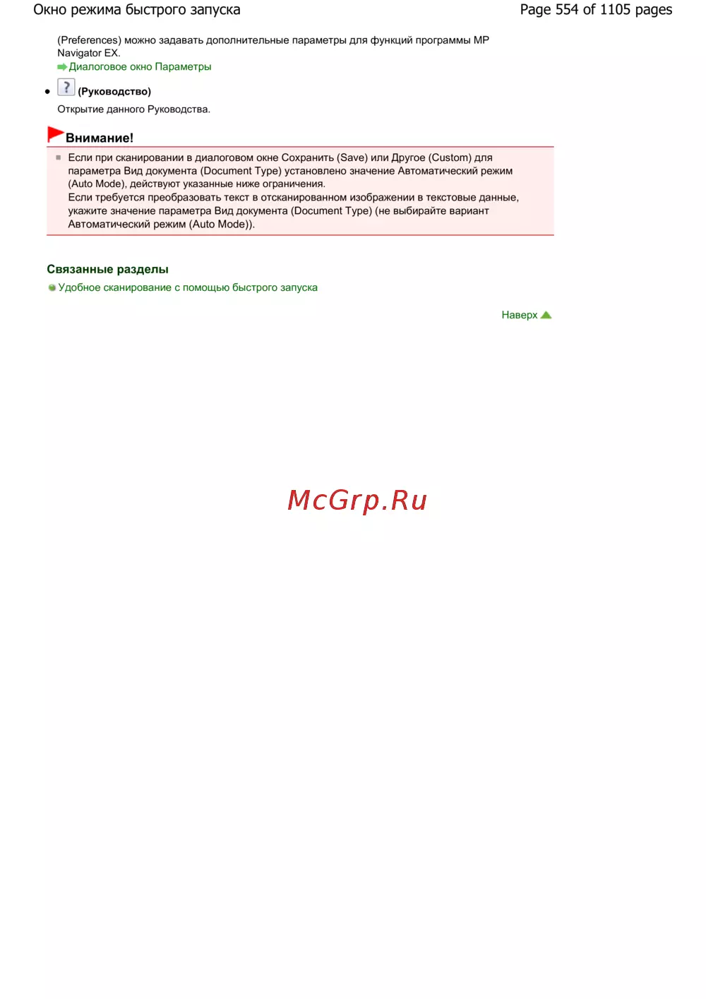 Page 554 of 1105 pagesОкно режима быстрого запуска