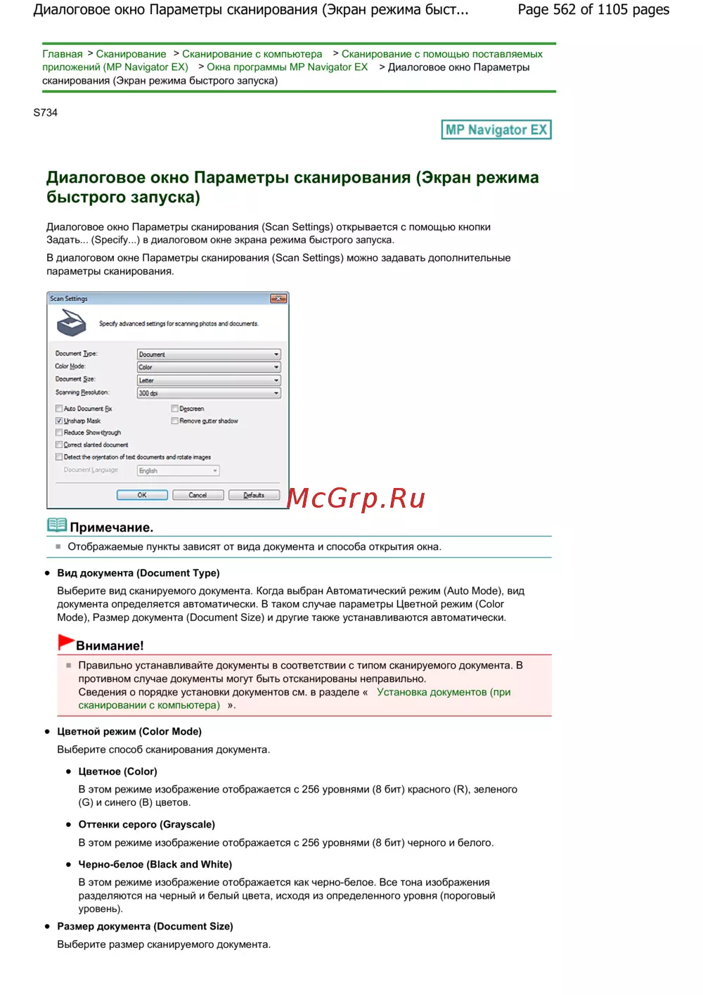 Canon Pixma MG6240 — настройка параметров сканирования для документов с компьютера [562/1105]