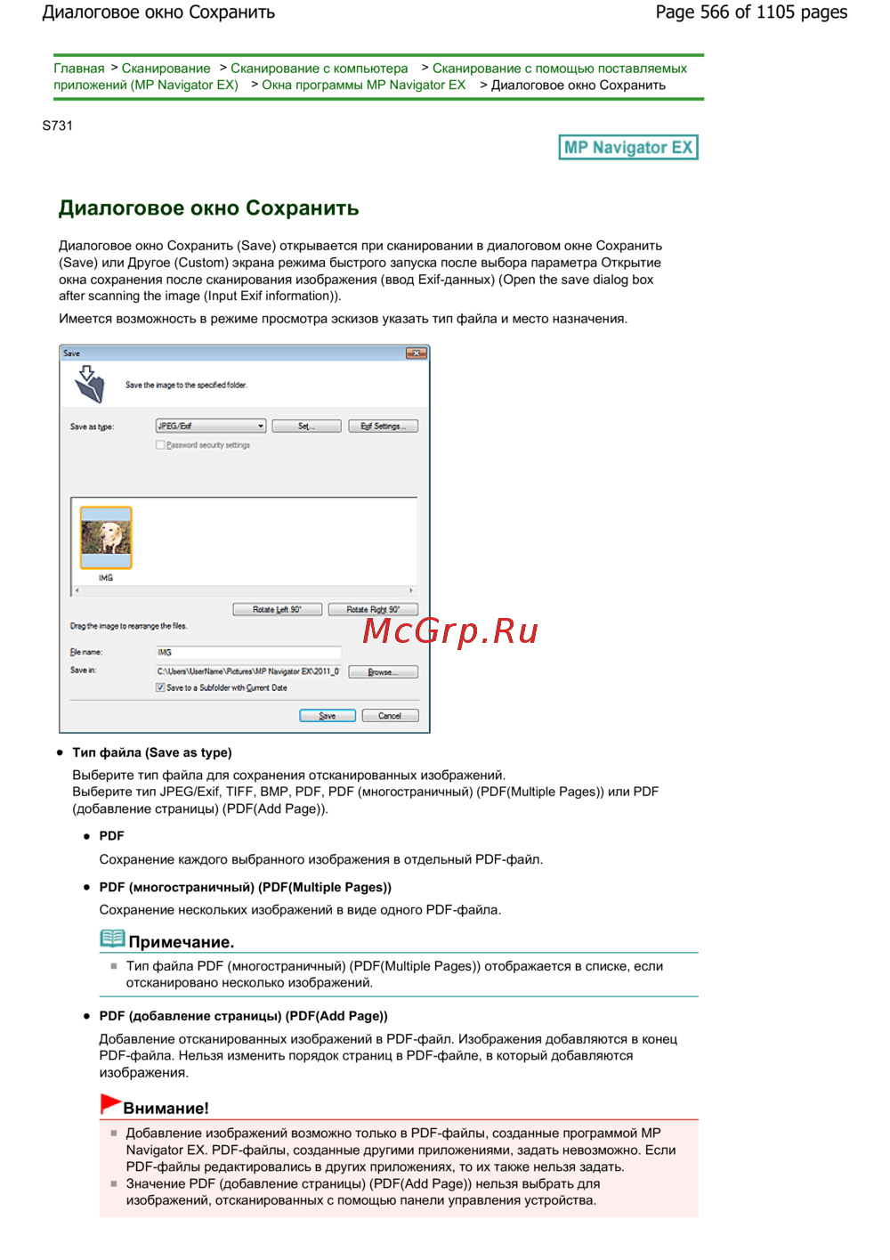 Canon Pixma MG6240 — сканирование изображений с компьютера: сохранение и форматы файлов [566/1105]