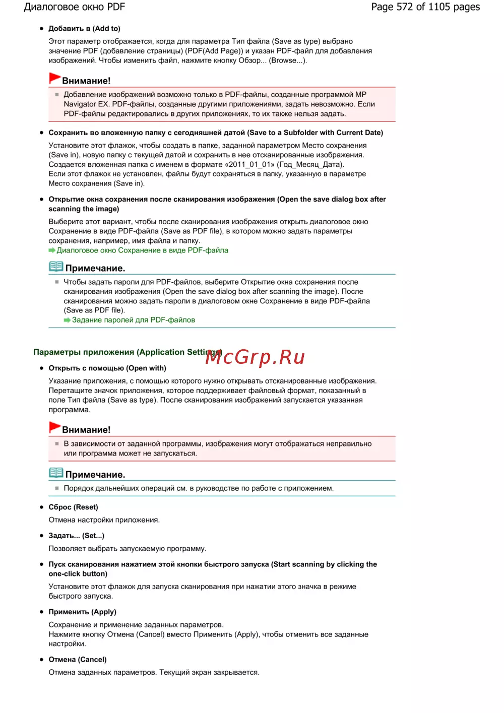 Page 572 of 1105 pagesДиалоговое окно PDF