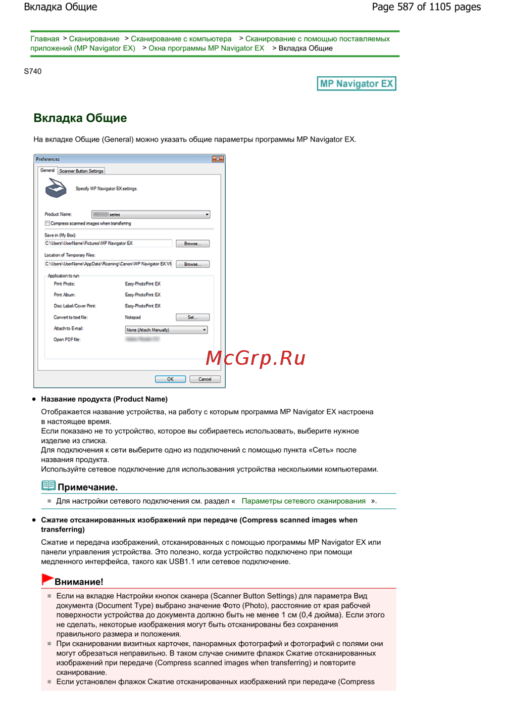 Canon Pixma MG6240 — настройки программы для сканирования: общие параметры и советы [587/1105]