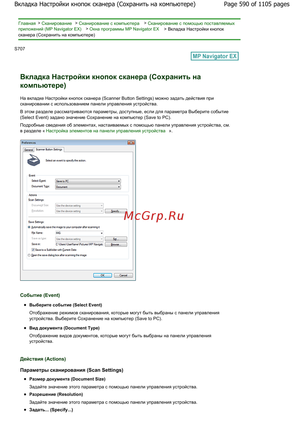Page 590 of 1105 pagesВкладка Настройки кнопок сканера (Сохранить на компьютере)
