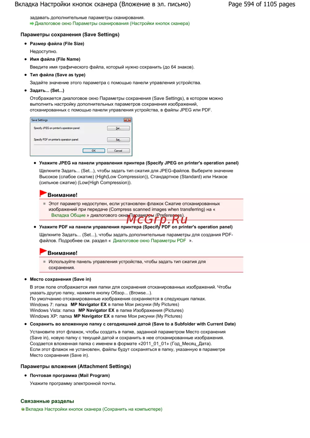 Page 594 of 1105 pagesВкладка Настройки кнопок сканера (Вложение в эл. письмо)