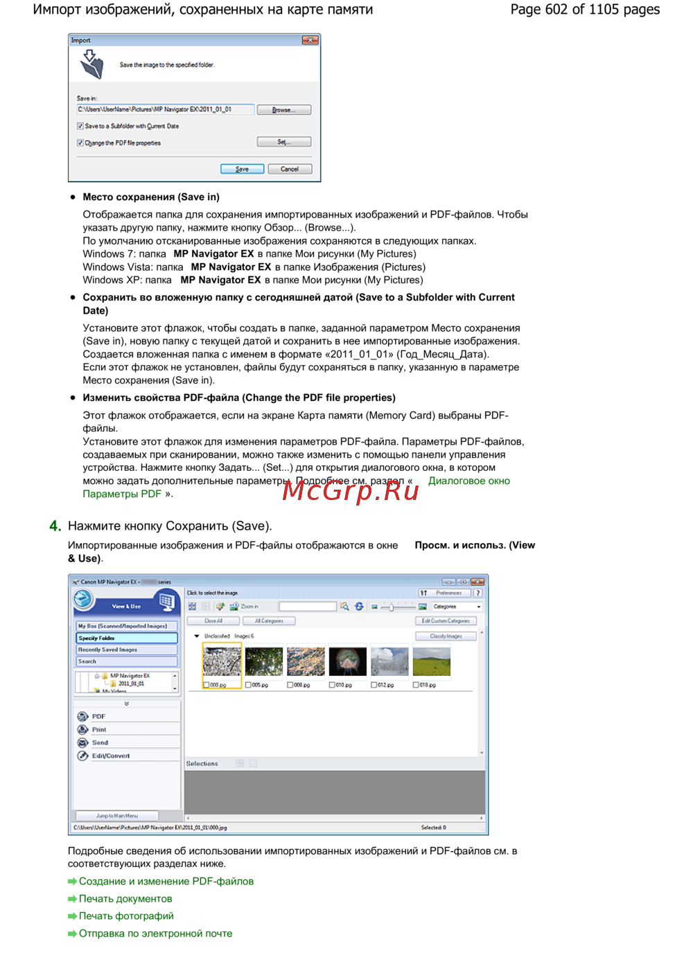 Page 602 of 1105 pagesИмпорт изображений, сохраненных на карте памяти