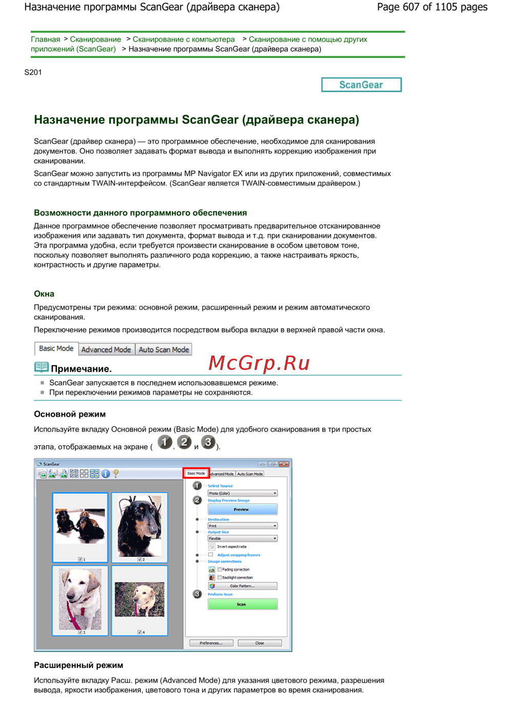 Page 607 of 1105 pagesНазначение программы ScanGear (драйвера сканера)