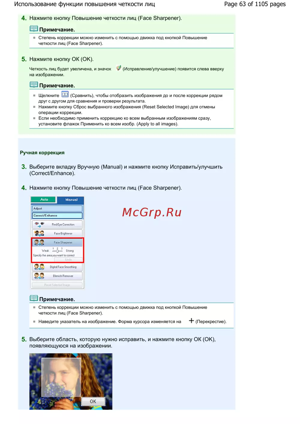 Page 63 of 1105 pagesИспользование функции повышения четкости лиц