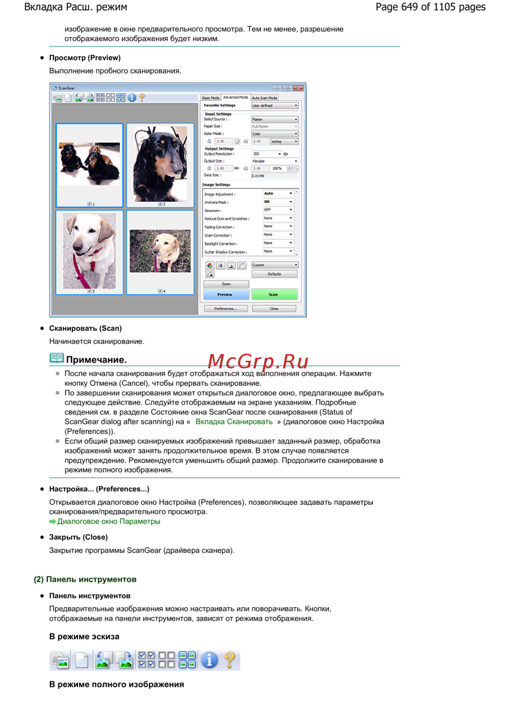 ScanGear dialog after scanning) на « Вкладка Сканировать » (диалоговое окно Настройка