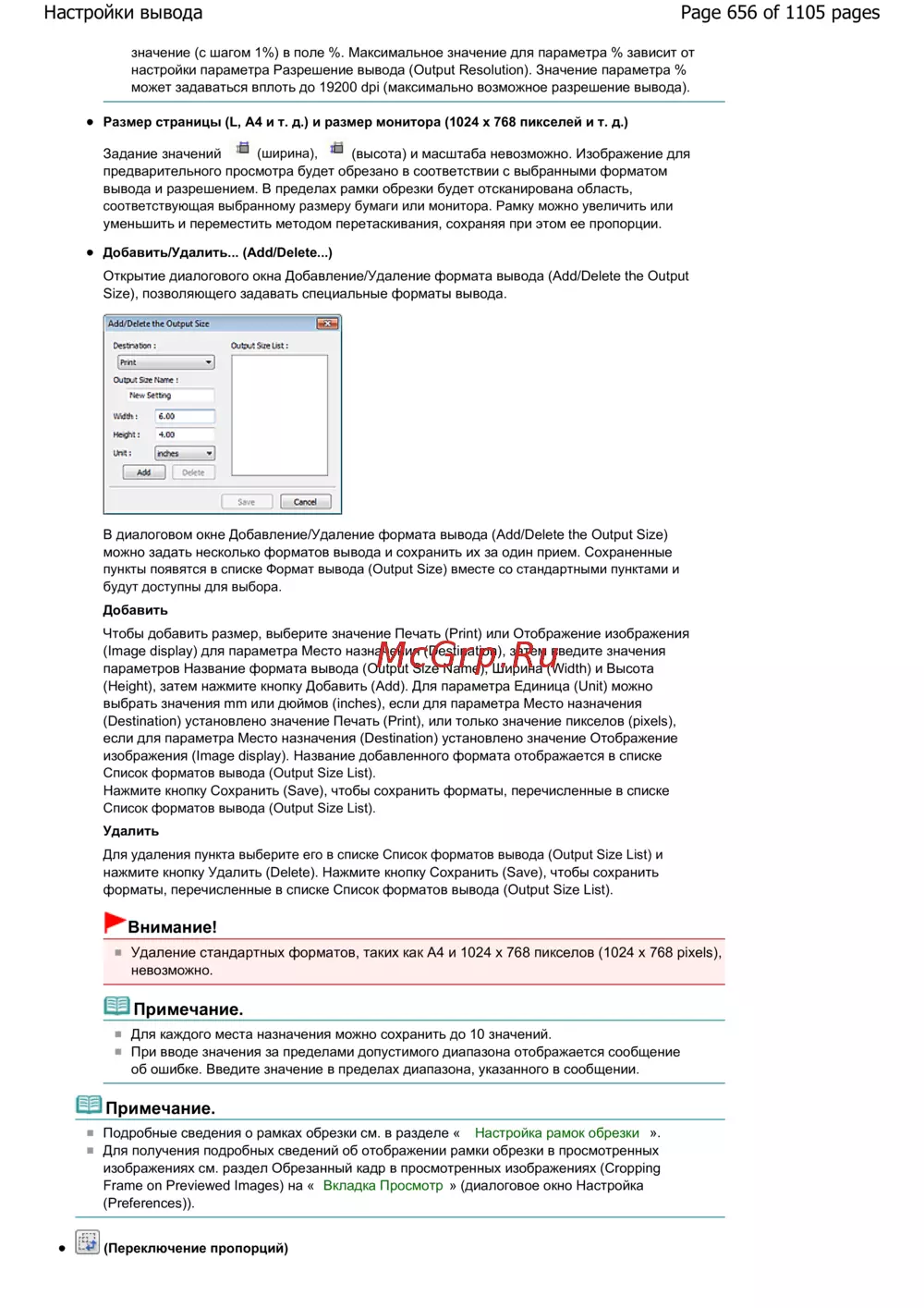 Canon Pixma MG6240 — настройка форматов вывода и разрешения для печати и отображения [656/1105]