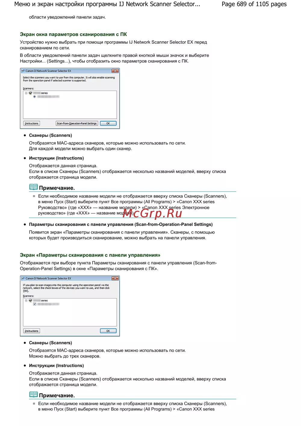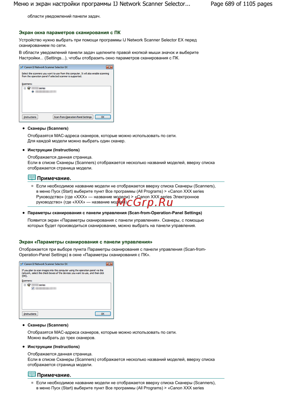 Page 689 of 1105 pagesМеню и экран настройки программы IJ Network Scanner Selector...