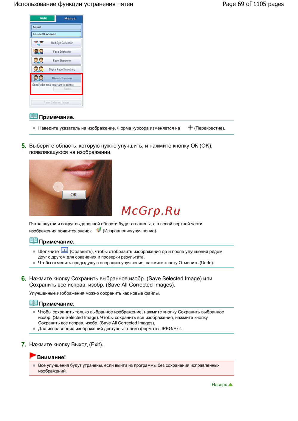 Page 69 of 1105 pagesИспользование функции устранения пятен