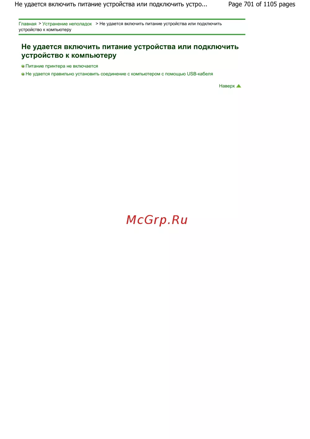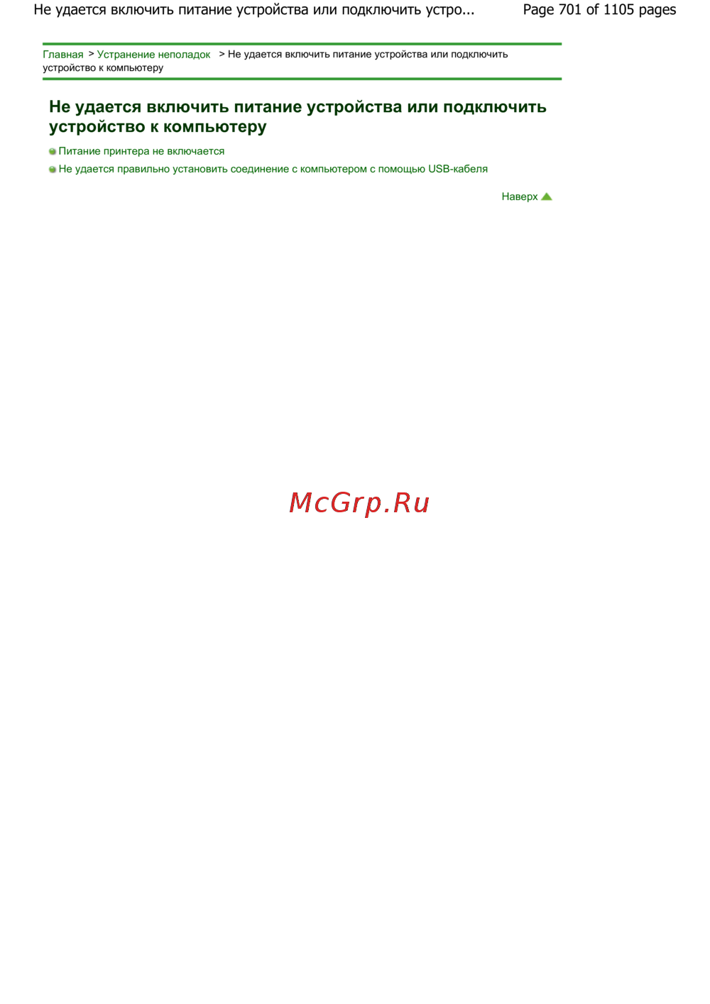 Canon Pixma MG6240 [701/1105] Не удается включить питание устройства или подключить устройство к компьютеру
