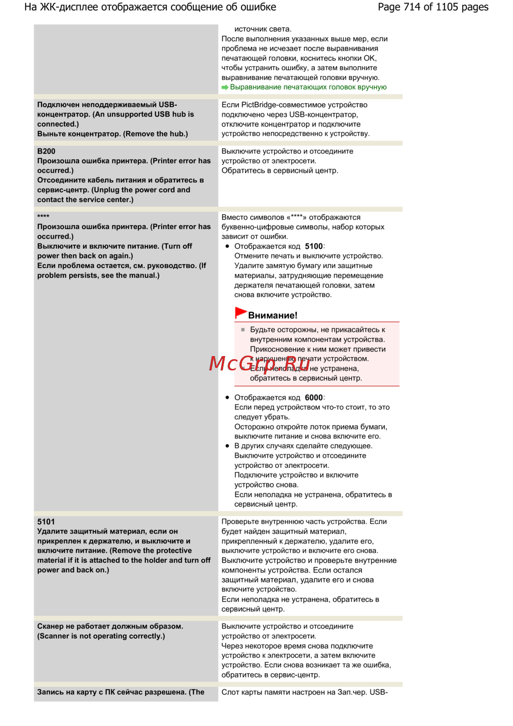 Canon Pixma MG6240 — устранение ошибок принтера: советы и рекомендации [714/1105]