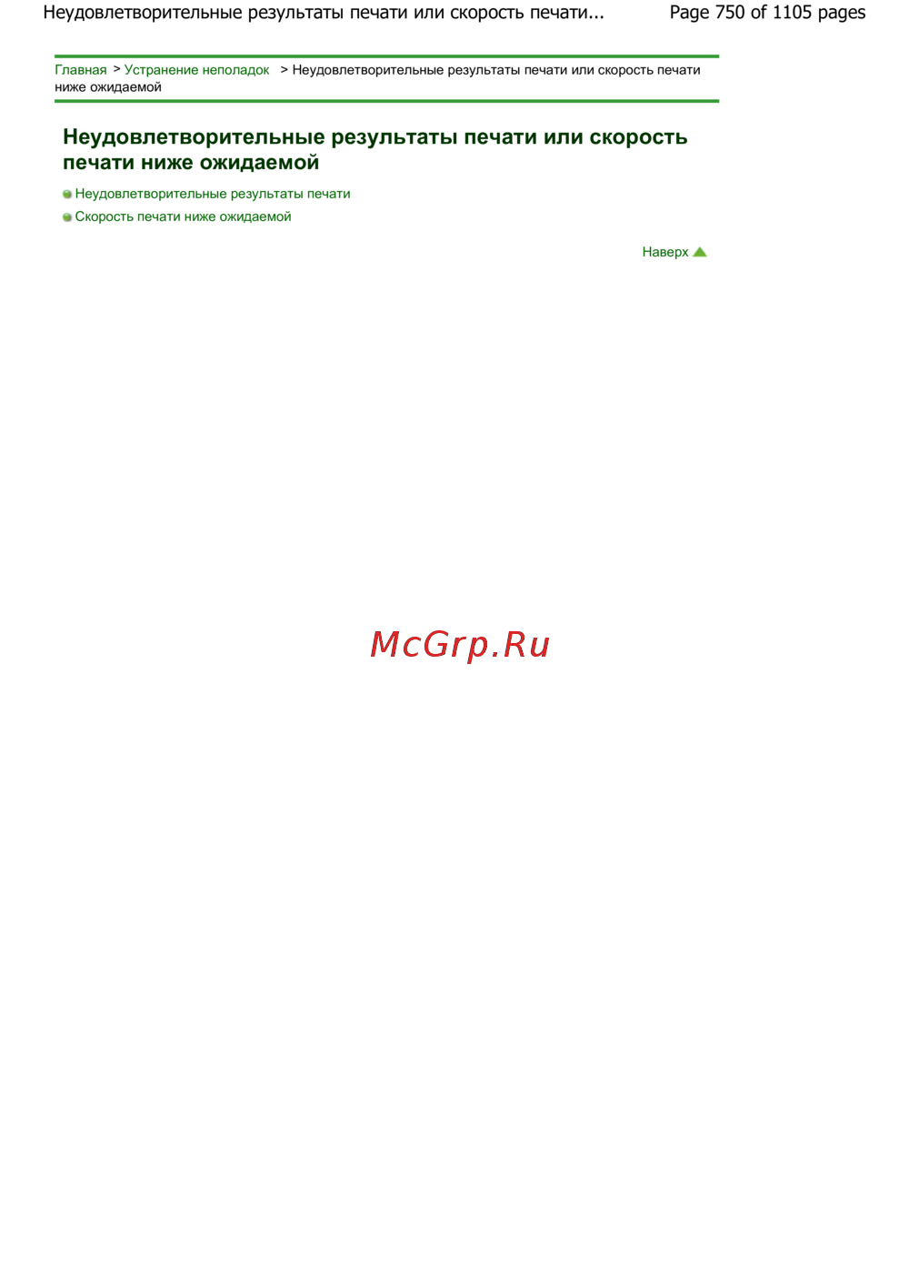 Page 750 of 1105 pagesНеудовлетворительные результаты печати или скорость печати...