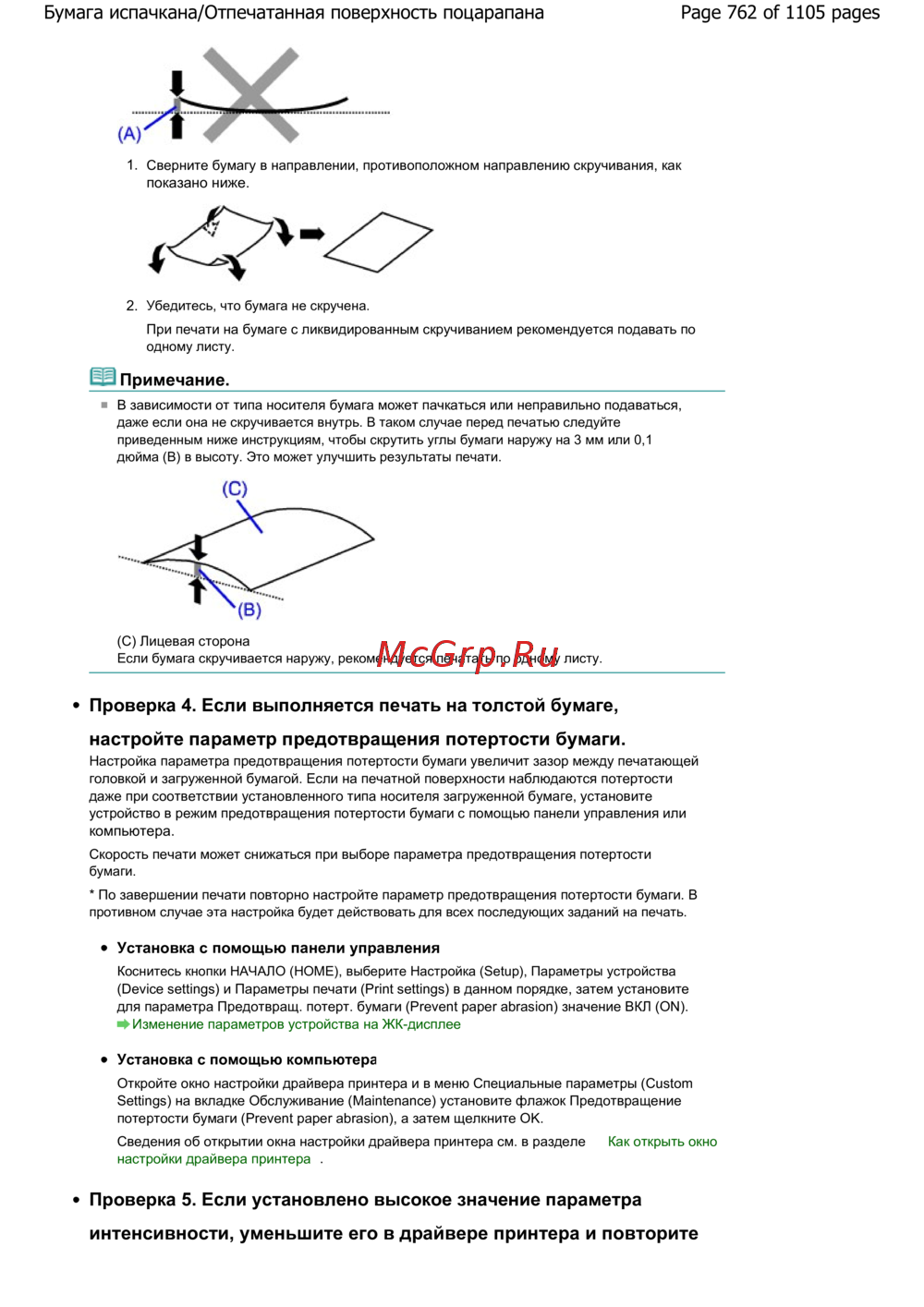 Canon Pixma MG6240 — советы по печати на бумаге: предотвращение скручивания и потертостей [762/1105]