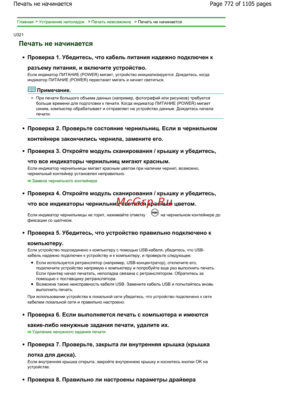Canon Pixma MG6240 — устранение неполадок при печати: советы и рекомендации [772/1105]