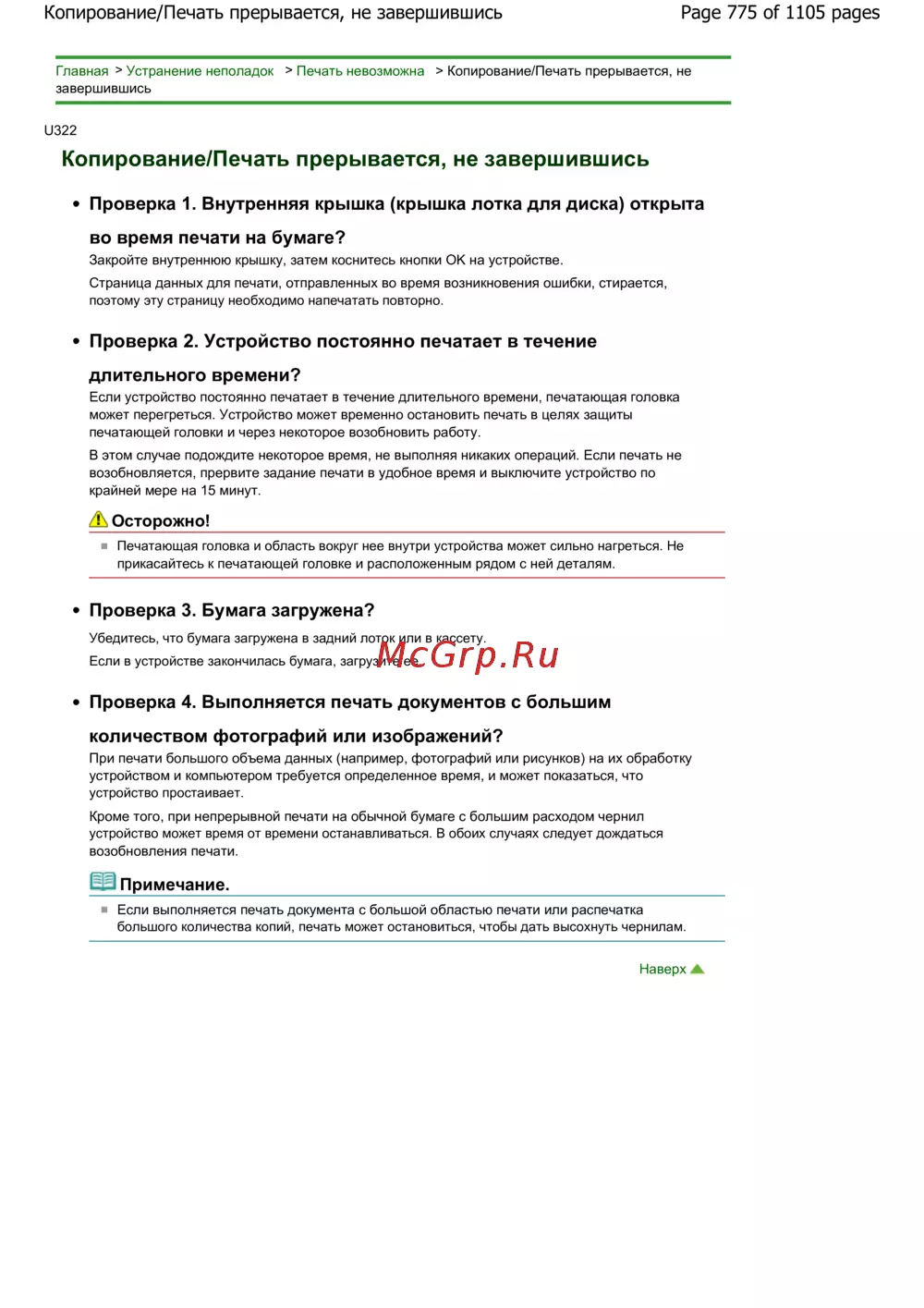 Page 775 of 1105 pagesКопирование/Печать прерывается, не завершившись