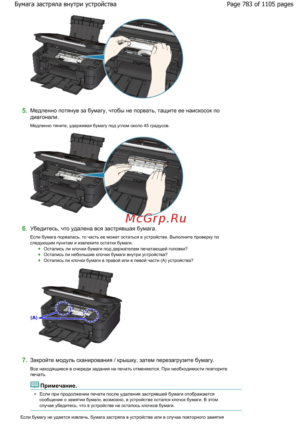 Page 783 of 1105 pagesБумага застряла внутри устройства