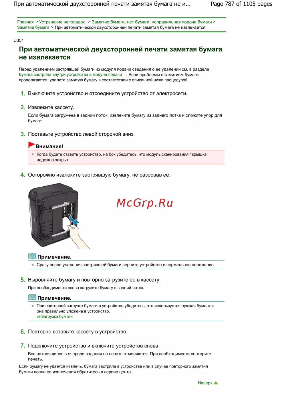 Page 787 of 1105 pagesПри автоматической двухсторонней печати замятая бумага не и...