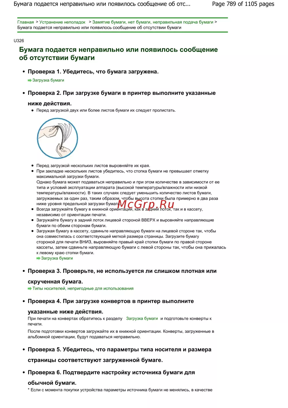 Page 789 of 1105 pagesБумага подается неправильно или появилось сообщение об отс...